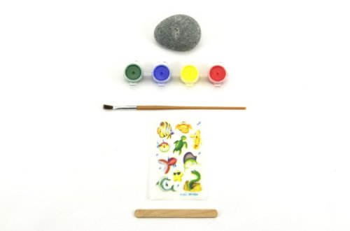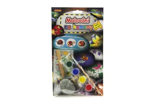 sada obsahuje dva riečne okruhliaky, akrylové farby, štetec, prenosové samolepky a drevenú špachtľu. Veľkosť balenia 16 x 28 cm.