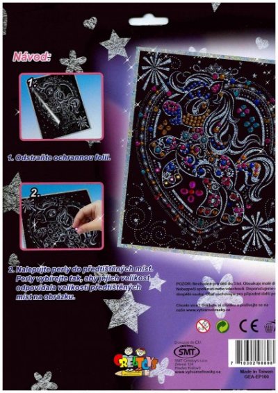 Obrázok obsahuje 200 farebných perál. Perly vyberajte podľa veľkosti predtlačených miest na obrázku a nalepte. Skvelá zábava podporujúca jemnú motoriku detí. Vhodné od 6 rokov. Veľkosť obrázku 25 x 20 cm.