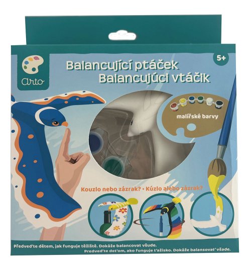 Vymaľuj si vtáčika podľa svojej fantázie. Vtáčik je tak skvele vyvážený, že drží na zobáčiku na akomkoľvek rovnom povrchu.