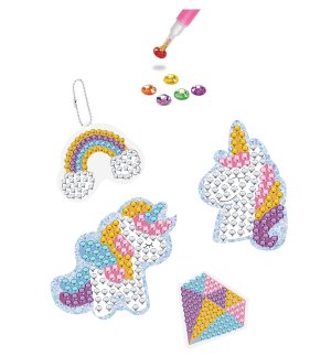 S touto sadou sa z každého dieťaťa stane klenotník. Stačí prilepiť diamanty podľa predlohy a behom chvíle vzniknú originálne prívesky a samolepky, ktoré sa budú krásne trblietať. Hotové prívesky si deti môžu pripnúť na batoh, peračník alebo ich darovať kamarátom.