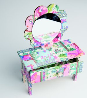 Vyrobte si vlastnú originálnu šperkovnicu. So zostavou ARTO si užijete kreatívne chvíľky a vytvoríte si jedinečný úložný priestor pre svoje poklady. Táto sada obsahuje všetky potrebné diely na zostavenie a ozdobenie drevenej šperkovnice v tvare toaletného stolíka pomocou obľúbenej servítkovej metódy.