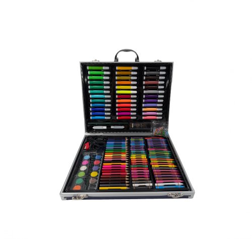 Pastelky: Sada farebných pasteliek, ktoré hladko kĺžu po papieri a umožnia ti vykresliť aj tie najjemnejšie detaily tvojich vesmírnych scén. Fixy: Jasné a sýte fixky pre výrazné linky a vyplňovanie väčších plôch. Voskoviek: Hladké voskovky s bohatou pigmentáciou, ideálne na nanášanie vrstiev a vytváranie zaujímavých textúr. Môžeš s nimi maľovať hmloviny alebo povrchy vzdialených planét. Vodovky: Paleta vodových farieb s pestrou škálou odtieňov. S trochou vody a štetca môžeš vytvárať priesvitné lazúry a prelínajúce sa farby, ktoré dodajú tvojim dielam éterický vzhľad. Nožnice: Bezpečné nožnice s guľatou špičkou, ktoré pomôžu s vystrihovaním tvarov a vytváraním koláží. Strúhadlo: Praktické strúhadlo, aby tvoje pastelky a voskovky boli vždy perfektne ostré pre presnú prácu. Pravítko: Pravítko pre presné meranie a rysovanie rovných línií, či už kreslíš kozmické lode alebo orámuješ svoje diela. Ďalšie pomôcky a malé drobnosti na tvorenie. V kufríku môžeš nájsť aj ďalšie užitočné drobnosti.