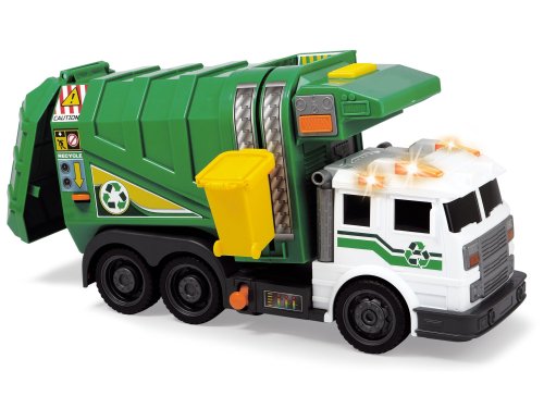 Smetiarske auto zelené na voľnobeh vr. popolnice. Zvukové a svetelné efekty, sklopný nákladový priestor, otvárací zadný panel. Dĺžka 39 cm.