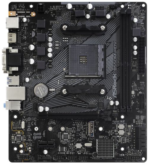 Výkonná základná doska ASRock B550M-HDV na stavbu moderného PC systému. Podporuje procesory AMD Ryzen 3. a vyššej generácie a až 64 GB pamäte DDR4, pre ktoré je pripravená dvojica slotov.
