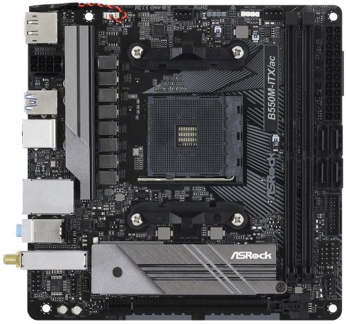 Výkonná základná doska ASRock B550M-ITX/ac pre stavbu moderného PC systému. Podporuje procesory AMD Ryzen 3. a vyššej generácie a až 64 GB pamäte DDR4, pre ktoré je pripravená dvojica slotov.