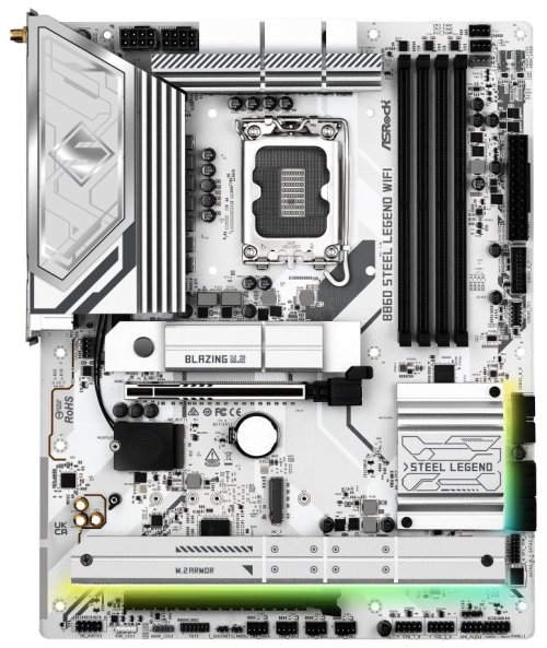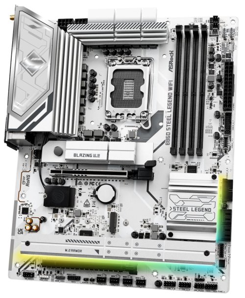 Základná doska ASRock B860 Steel Legend WiFi je vybavená vysokorýchlostným riešením PCIe Gen5 Blazing M.2 , ktoré dosahuje dvojnásobnú šírku pásma a je ideálny pre moderné SSD jednotky. Chladenie sa skladá z veľkého hliníkového chladiča, ktorý efektívne odvádza teplo a podporuje stabilný chod pri vysokej pracovnej záťaži, prípadne hraní hier.