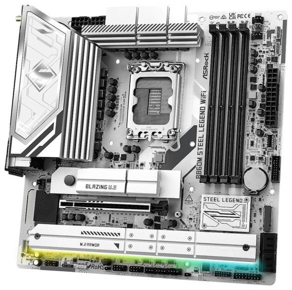 Základná doska ASRock B860 Steel Legend WiFi je vybavená vysokorýchlostným riešením PCIe Gen5 Blazing M.2 , ktoré dosahuje dvojnásobnú šírku pásma a je ideálny pre moderné SSD jednotky. Chladenie sa skladá z veľkého hliníkového chladiča, ktorý efektívne odvádza teplo a podporuje stabilný chod pri vysokej pracovnej záťaži, prípadne hraní hier.