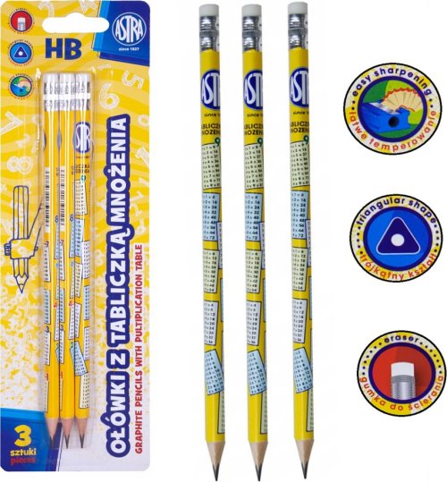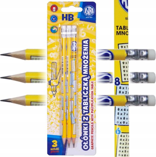 Súprava troch ceruziek s tvrdosťou HB a praktickou potlačou násobilky. Vlastnosti: