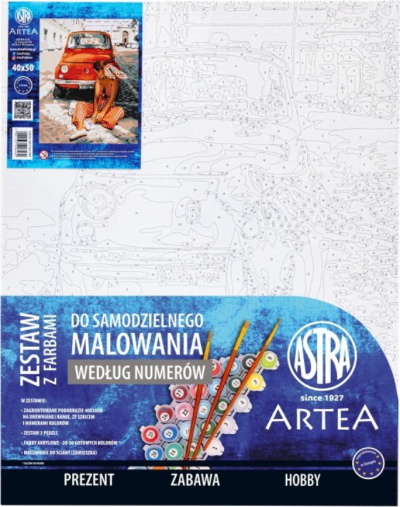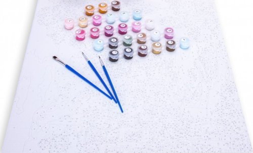 Maľujte podľa čísel a postupne sa pred vami objaví jedinečný obraz. predtlačené vysoko kvalitné plátno s rozmermi 40x50 cm, napnuté na ráme (jasne viditeľné polia a znaky, plátno s jemnou štruktúrou, vynikajúca kvalita, odolné proti roztrhnutiu), sada 3 vysoko kvalitných nylonových štetcov (štetce pre malé aj veľké plochy, jemné, veľmi pružné , ľahko sa používajú), netoxické farby šetrné k životnému prostrediu, vysoká krycia schopnosť farieb, časom nevyblednú, háčiky na zavesenie obrazu.