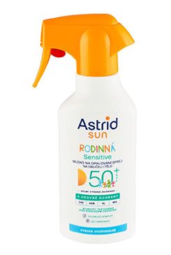 Astrid Sun rodinné mlieko v spreji Sensitive OF50+ ponúka oveľa viac než len základnú ochranu proti slnku. Zohľadňuje špeciálne dermatologické potreby detí i dospelých a poskytuje optimálnu ochranu pred 4 hlavnými typmi slnečného žiarenia (UVA, UVB, VL*, IRA*), ktoré poškodzujú pokožku. Ľahká textúra nezanecháva biely film na pokožke. Zároveň pomáha minimalizovať riziko alergických reakcií a vďaka kombinácii kyseliny hyalurónovej s betaínom upokojuje citlivú pokožku a udržuje ju dlhodobo hydratovanú. Vyskúšajte mlieko na opaľovanie pre celú rodinu od značky Astrid pre bezpečný pobyt na slnku.