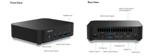 Zadné porty: *1 x USB 3.2 Gen2 Type-C w/ DisplayPort 1.4 *2 x USB 3.2 Gen 2 Type-A *1 x USB 2.0 Type-A *1 x HDMI 2.1 (TMDS) *1 x DisplayPort 1.4 *1 x RJ45 LAN *1 x DC-in