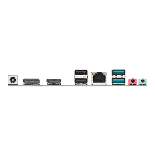 Porty na zadnom paneli: *2 x USB 10 Gbps portov (2 x Type-A) *2 x USB 2.0 ports (2 x Type-A) *1 x DisplayPort *1 x HDMI port *1 x RTL8111EPV-CG Ethernet (DASH LAN) *2 x Audio jacks *1 x DC napája