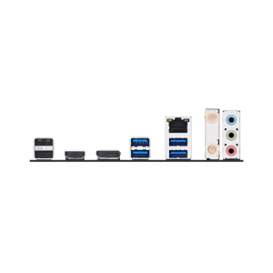 I/O porty zadného panela: 4 x USB 5Gbps portov (4 x Type-A) 2 x USB 2.0 ports (2 x Type-A) 1 x HDMI port 1 x DisplayPort 1 x Wi-Fi module 1 x Realtek 1Gb Ethernet port 3 x Audio jacks
