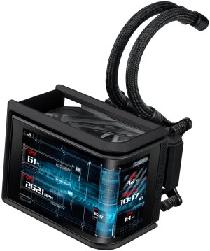 Kompletná chladiaca sústava zahŕňa výkonné čerpadlo s otáčkami 1800–3200 ot./min , hliníkový radiátor a tri ARGB ventilátory s vysokým statickým tlakom 5,45 mm H2O a prietokom vzduchu 71,44 CFM . Špeciálne skrátené 200mm hadice s textilným opletením a posuvný LCD panel minimalizujú prekážky v zostave a maximalizujú vizuálny dojem.