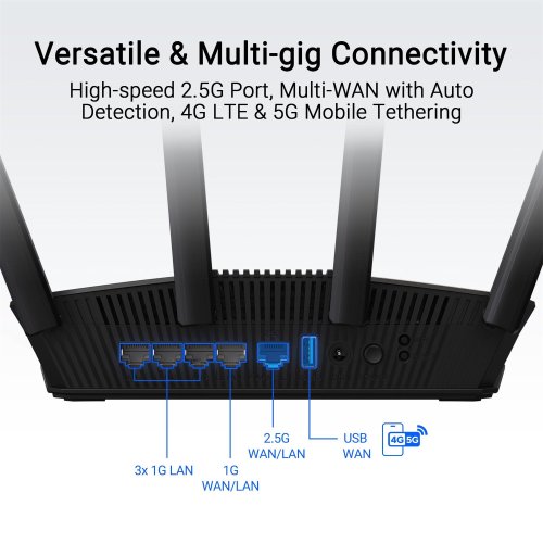 Jedným z kľúčových rysov tohto routera je technológia Smart AiMesh , ktorá umožňuje bezproblémové rozšírenie pokrytia po celom dome. Vďaka tomu získate silný a stabilný signál aj vo vzdialenejších kútoch vašej domácnosti.