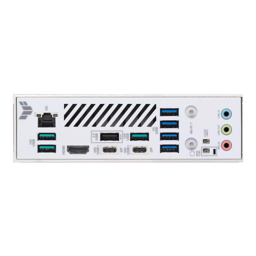 Zadný panel I/O porty: 2 x USB4® (40 Gbps) portov (2 x USB Type-C®) 3 x USB 10 Gbps portov (3 x Type-A) 4 x USB 5 Gbps portov (4 x Type-A) 1 x USB 2.0 port (1 x Type-A) 1 x HDMI ™ Ethernet port 3 x Audio jacks 1 x BIOS FlashBack™ button 1 x Clear CMOS button