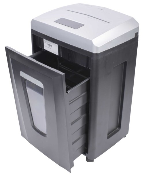 Kvalitný skartovací stroj ergonomického designu, vhodný pre skartáciu dokumentov so šírkou až 230 mm . Jednoduché ovládanie je zaistené dotykovým panelom. Stroj je štandardne vybavený automatickým systémom štart/stop, spätným chodom, tepelnou poistkou motora proti prehriatiu a signalizáciou preplneného koša. Príležitostne je možné skartovať zošívacie a kancelárske sponky a vďaka samostatnému vstupu aj kreditné karty a CD . Ľahko vyprázdniteľná odpadová nádoba má objem 22 l . Praktické pojazdové kolieska uľahčujú manipuláciu.