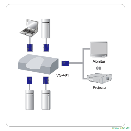Aten VS-491 - elektronický video prepínač 4 PC - 1 VGA