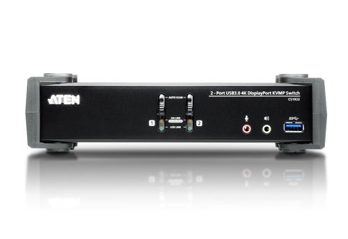 Aten CS1922 2-port 4K DisplayPort KVMP 3.0 prepínac umožní jednému užívateľovi zdieľať dva pripojené počítače za pomoci jednej klávesnice, myši a monitoru.