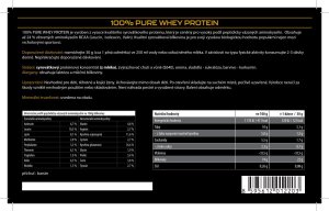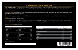 Srvátkový proteínový nápoj s vysokým podielom pepticky viazaných vetvených aminokyselín Bcaa (leucín, izoleucín, valín). Srvátková bielkovina patrí medzi najlepšie využiteľné zdroje bielkovín vďaka ľahkej stráviteľnosti a vysokému podielu esenciálnych aminokyselín. Nápoj je vhodný ihneď po fyzickej aktivite alebo kedykoľvek počas dňa na doplnenie kvalitných bielkovín v strave. Prémiový srvátkový proteín zo škandinávskeho mlieka Proteínový nápoj 100% PURE WHEY PROTEIN je čistý srvátkový koncentrát vyrobený šetrnou ultrafiltráciou z mlieka pôvodom z Dánska. Srvátková bielkovina má vysoký podiel esenciálnych aminokyselín vrátane peptidicky viazaných aminokyselín BCAA, ktorých obsahuje 23,7 %. Ideálna výživa po tréningu alebo na doplnenie bielkovín počas dňa Srvátkový proteín patrí medzi ideálne zdroje bielkovín po fyzickej aktivite. Jedna dávka (30 g) poskytuje 22 g bielkovín, čo je optimálna dávka bielkovín po tréningu. Bielkoviny prijaté po športovej aktivite uľahčujú regeneráciu a prispievajú k rastu a udržaniu svalovej hmoty. 100% Pure Whey Protein má univerzálne využitie. Popri užívaní v podobe proteínového šejku po tréningu je možné proteín použiť do raňajkových vločiek alebo na prípravu proteínových dezertov a koláčov. 100% PURE WHEY PROTEIN v bodoch:
