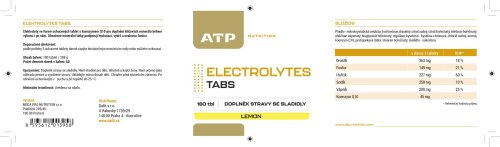 ELECTROLYTES TABS Inovatívna forma ochutených tabliet obsahujúca kľúčové elektrolyty (napr. sodík, draslík, horčík, vápnik) v kombinácii s bioaktívnym koenzýmom Q10 (CoQ10) – navrhnuté pre športový výkon aj následnú regeneráciu. Ochutené tablety sú určené pre všetky aktívne osoby, ktoré počas výkonu alebo po ňom potrebujú rýchlo a efektívne doplniť minerálne látky, podporiť hydratáciu, svalovú funkciu a energetický metabolizmus. Benefity