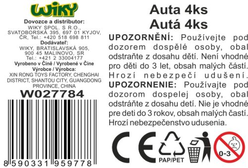 Autá 4 ks. Veľkosť 6,5 cm. Voľné kolesá. Viac variantov.