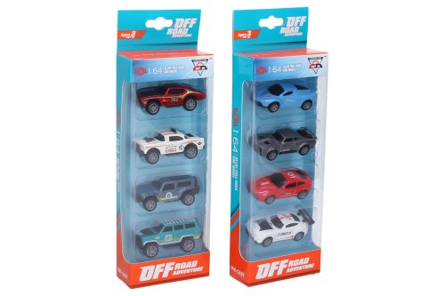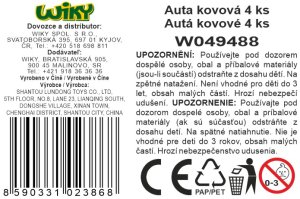 Autá kovové 4 ks set. Rozmery auta 7,5x2x2 cm. Balenie obsahuje 4 ks. Na spätné natiahnutie. 2 varianty.
