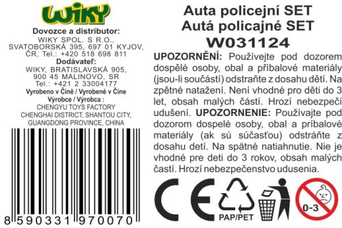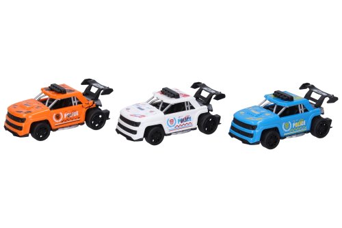 Autá policajné 3 ks. Rozmery 11x5,5x5 cm. Na spätné natiahnutie.