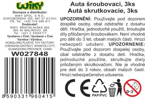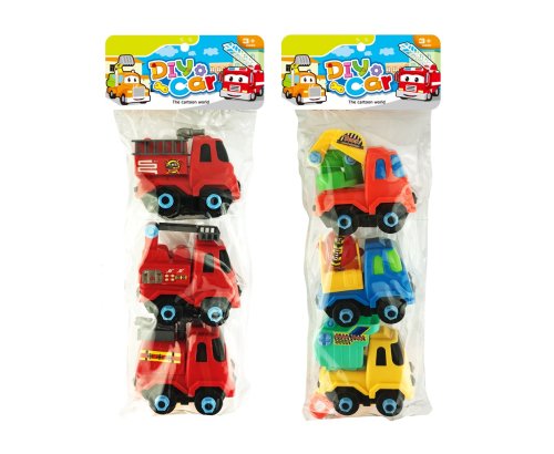 Autá skrutkovacie 3 ks. Rozmery auta 10x8x9 cm. 2 varianty - stavebné, hasičské.