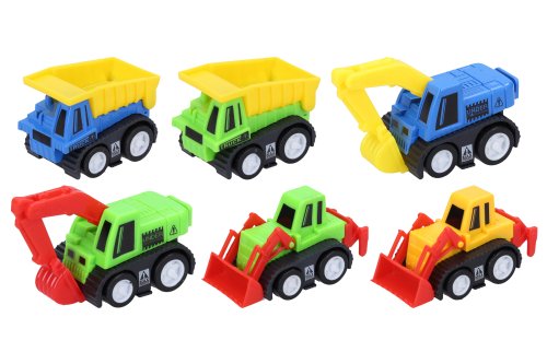 Plastové autíčka na spätné natiahnutie potešia všetkých malých staviteľov! Práce na stavbe s týmito malými pomocníkmi pôjde raz dva!