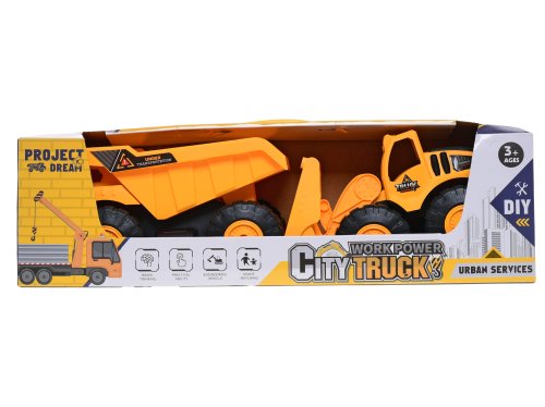 Autá stavebný bager nakladač 24 cm + stavebná sklápačka 26 cm voľný chod