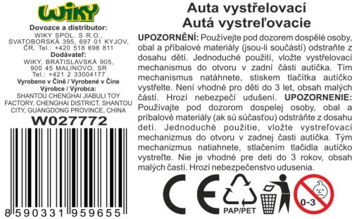 Autá vystreľovacie kovové 2 ks. Rozmery auta 6,5x5x4,5 cm.