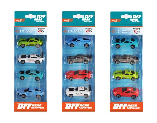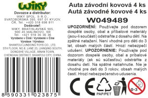 Autá závodné kovové 4 ks. Rozmery auta 7,5x3,2x2,5 cm. Balenie obsahuje 4 ks. Voľné kolesá. Viac variantov.