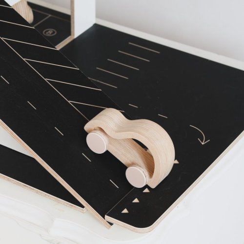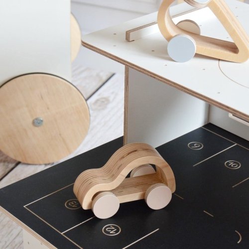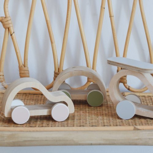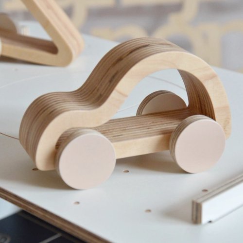 Drevený minimalistický dizajn autíčka s pohyblivými kolieskami.