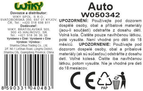 Auto. Veľkosť 24cm. Voľné kolesá. 3 varianty - smetiarske, hasičské, policajné.