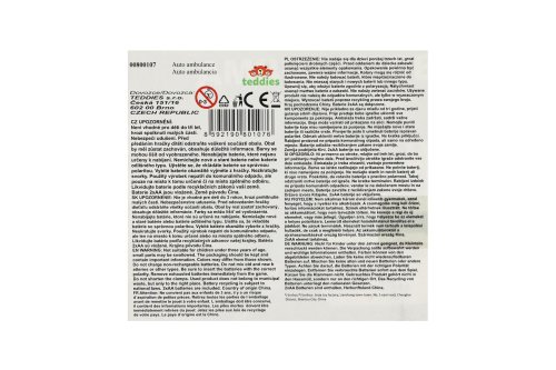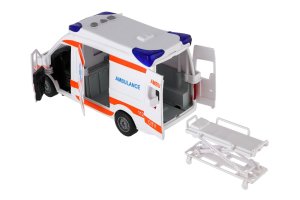 Ambulancie je vozidlo, ktoré sa využíva pri preprave zranených pacientov, na dopravu ranených alebo chorých. Navyše ambulancia disponuje lehátkom na prevoz pacientov. Batérie 2x AA sú súčasťou výrobku. Ambulácia má otváracie dvere a je na zotrvačník. Vyrobené z kvalitného a odolného plastu. Veľkosť auta je 26 cm. Rozmery balenia 37 x 18 x 11,5 cm Vhodné pre deti od 3 rokov.