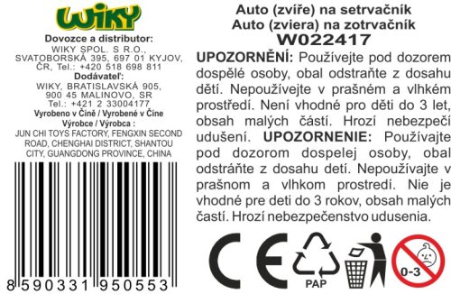 Auto zviera. Veľkosť 12 cm. Na zotrvačník. 4 varianty - nosorožec, býk, lev, zebra.