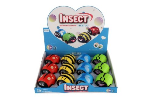 Autíčko s motívmi chrobáka, lienky, včielky alebo vážky je na spätné natiahnutie a je veľkosti 9 cm. Vhodné pre deti od 3 rokov.