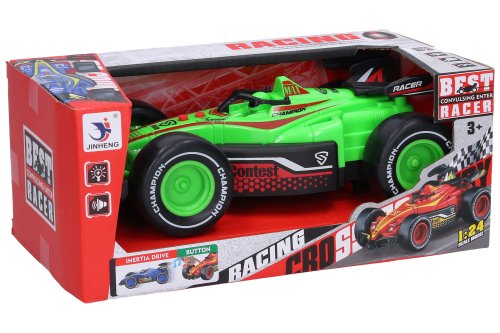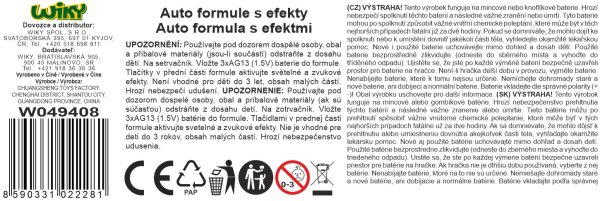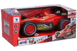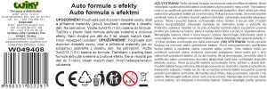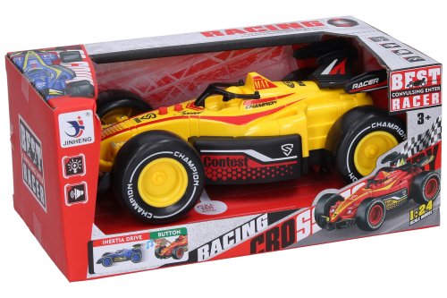 Auto formula na zotrvačník s efektmi. Rozmery 21,5x11,5x7,5 cm. Vydáva svetelné a zvukové efekty. Aktivácia tlačidlami v prednej časti formule - zvuk štartu motora a štartových svetiel, zvuk jazdy. 3 varianty - žltá, červená, modrá. Batéria 3xAG13 1,5 V, súčasťou balenia.