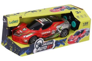 Auto Hankook RC na diaľkové ovládanie. Rozmery 19x8x4,5 cm. Frekvencia 27MHz. Svetelné efekty. 3xAA batérie do auta, 2xAA do ovládača nie sú súčasťou. Prepínač ON/OFF na spodnej strane obalu. 2 varianty - zelená, červená.
