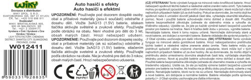 Svetelné a zvukové efekty, aktivácia tlačidlami na streche. Voľné kolesá.