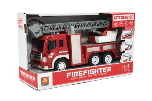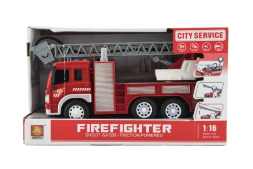 Plastové autíčko pre malých hasičov je vyrobené z kvalitného plastu. Model jazdí na zotrvačník, vydáva zvuky a bliká. Auto má vysúvací rebrík a môžete striekať vodu ako skutočný hasič. Kúpte deťom hasičské auto! Veľkosť dodávky je 30 cm. Batérie 3x AG13 sú súčasťou balenia a slúžia iba na skúšobné účely. Auto je vyrobené z kvalitného a odolného plastu. Rozmery balenia 32 x 18 x 12cm. Vhodné pre deti od 3 rokov.