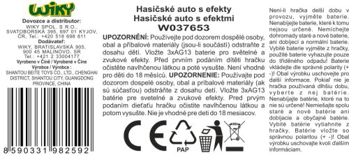 Auto hasičské drevo/plast s efektmi. Veľkosť 25cm. Svetelné a zvukové efekty. Batéria 3xAG13 súčasťou. Povrázok na ťahanie auta.