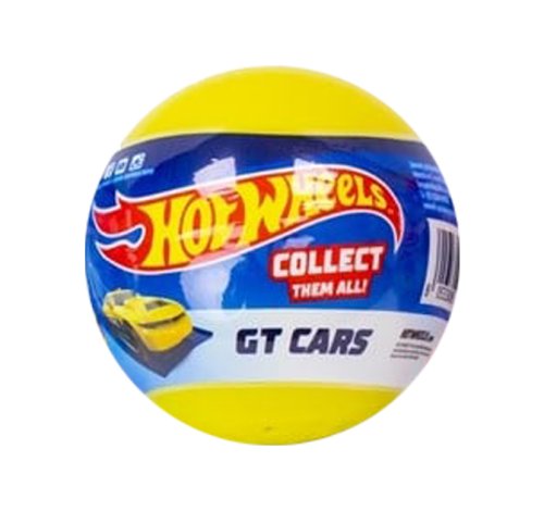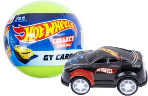 Krabička/kapsule/gule s prekvapením obsahujúce kovové autíčko Hot Wheels GT, 65mm, autíčko má pohon na pull-back, 12 druhov