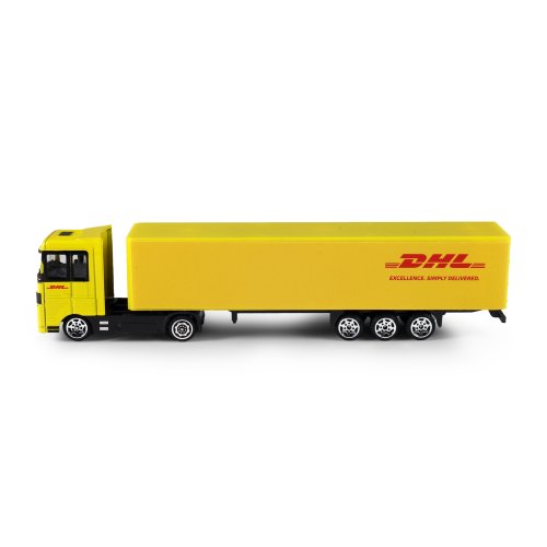 Kúp si tento originálny kamión s logom prepravnej spoločnosti DHL a rozšír si týmto svoj vozový park! Model kamiónu 1:87 je vyrobený z kovu, príves je vyrobený z PVC. Model jazdí na voľný chod. Táto unikátna hračka nadchne všetkých chlapcov! Veľkosť auta: 19 cm Rozmer balenia: 20 x 6 x 4 cm Vhodné pre deti od 3 rokov