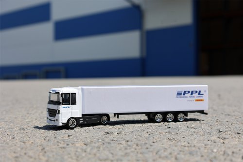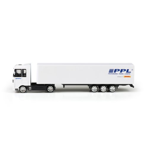 Kúp si tento originálny kamión s logom prepravnej spoločnosti PPL a rozšír si týmto svoj vozový park! Model kamiónu 1:87 je vyrobený z kovu, príves je vyrobený z PVC. Model je dlhý cca 20 cm a jazdí na voľný chod. Táto unikátna hračka nadchne všetkých chlapcov, tak obohať svoju zbierku o tento parádny kúsok!
