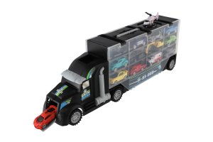 Veľký kamión prepravník s voľným chodom poteší všetkých malých milovníkov áut! Kamión slúži ako úložný box a zároveň ako herný set – vo vnútri sa ukrýva priestor na uloženie mnohých dopravných prostriedkov, ktoré je možné ľahko prevážať aj vystavovať. Predná aj zadná rampa umožňuje pohodlný vjazd aj výjazd autíčok, a vďaka madlu je možné kamión jednoducho prenášať. Nechýba ani pristávacia plocha pre vrtuľník - ideálna hračka na cesty aj na doma! Veľkosť hračky: 50 cm
