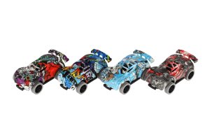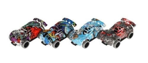 Autíčko na spätné natiahnutie s priľnavými pneumatikami zvládne každý podvozok auta nezabudnite pretiahnuť pružinu pre parádne triky.
