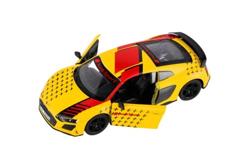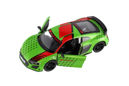 Krásny kovový model auta Audi R8 Coupé v mierke 1:36. Autíčko má otváracie dvere a je na spätné natiahnutie. Dostupné v štyroch farebných variantoch. Veľkosť auta je 12 cm. Vhodné pre deti od 3 rokov