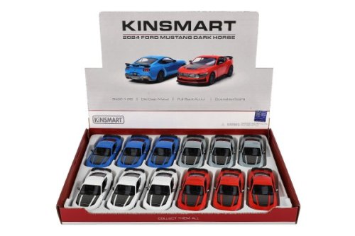 Krásny kovový model auta Ford Mustang Dark Horse 1:38. Autíčko má otváracie dvere a je na spätné natiahnutie. Dostupné v štyroch farebných variantoch. Veľkosť auta je 12 cm. Vhodné pre deti od 3 rokov